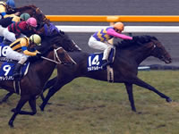 | 馬群をさばいて鮮やかに抜け出したツルマルボーイ=東京競馬場 |