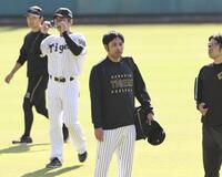 藤田のミットが構えたところから動かない。左腕はテンポ良く、さすがの制球力を披露。「最初はあんな感じでどんどん投げて、上の力を抜いて下で投げるみたいな感じでやっています」。藤川監督から守護神に指名され、具志川キャンプで調整を一任された。