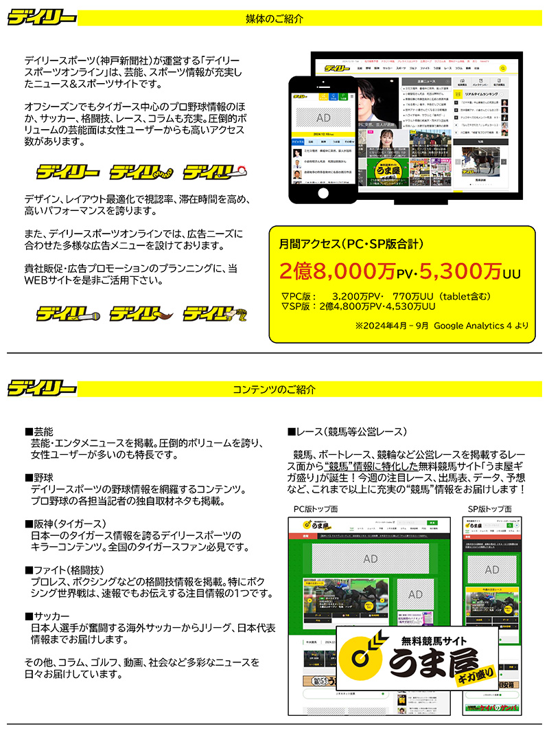 デイリースポーツオンライン広告メニューガイド ※一括ダウンロードはコチラ