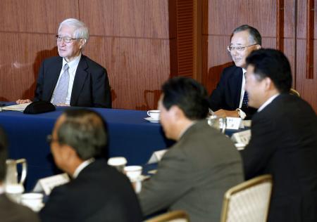 記者会見で、今季のレギュラーシーズン終了後に辞任する意向を表明するプロ野球の加藤良三コミッショナー=19日午後、東京都内のホテル