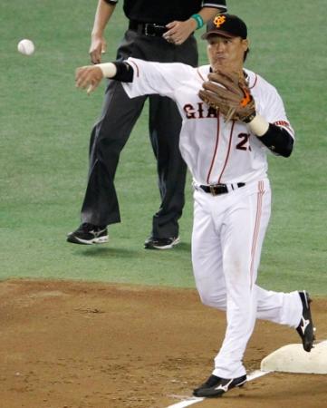 3回広島無死、菊池涼介の打球を捕球し損なう巨人・村田修一=東京ドーム(撮影・会津智海)