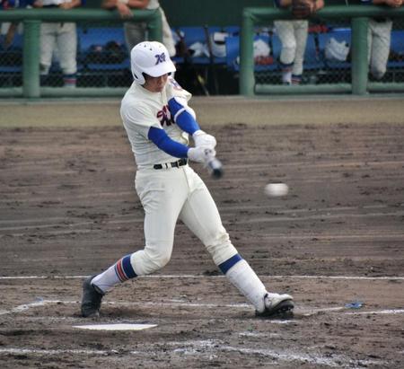 「打った瞬間はレフトフライかと思いました。入ったら頭が真っ白になりました」と谷口嘉紀外野手(1年)。九回1死から代打で登場すると、青木監督からの「長打を狙っていけ」という言葉を胸に、直球をフルスイングした。打球は高々と舞い上がって左翼席へ着弾。右足かかとを疲労骨折した影響で、今大会直前に登録変更でメンバー入りした1年生が、大仕事をやってのけた。