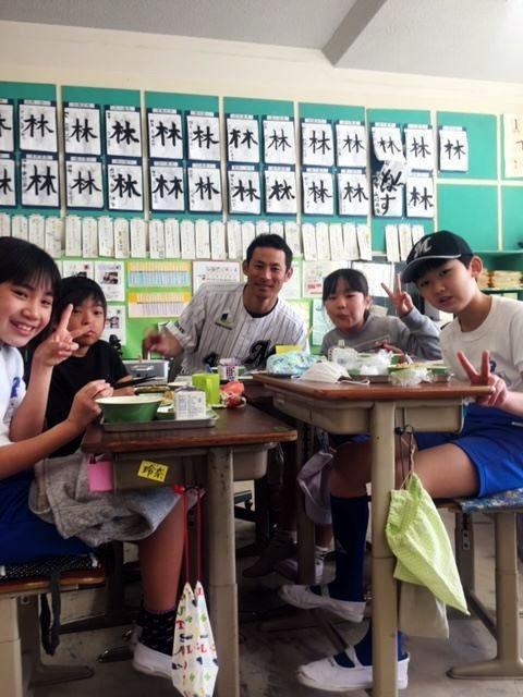 ロッテ 荻野が小学生と給食交流「ボクは小さい方から3番目だった」