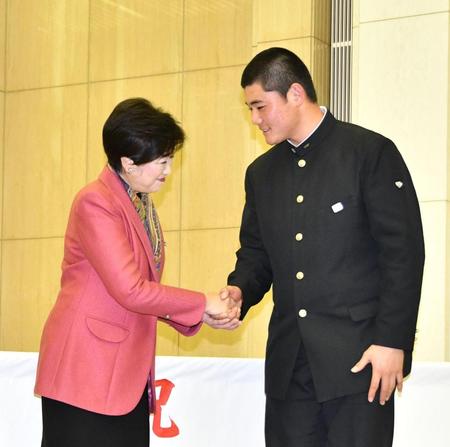 早実・清宮、小池都知事と対面 「高校生トップクラスの野球を見せつけてきたい」