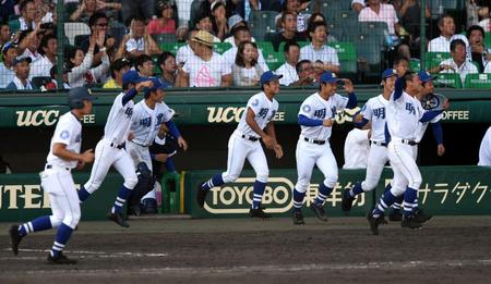 「全国高校野球選手権・3回戦、明豊9-8神村学園」(18日、甲子園球場)