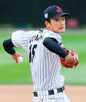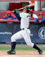 キューバ戦の1回、犠飛を放つ清宮=サンダーベイ(共同)