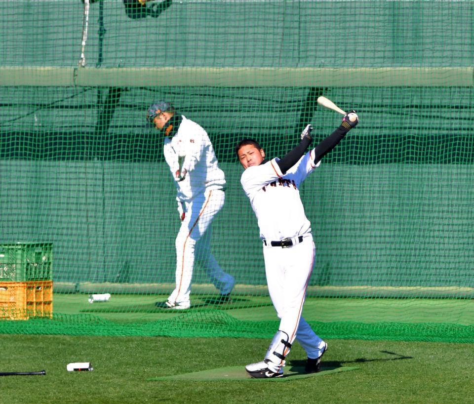 巨人・ドラ4北村、星稜の大先輩・松井臨時コーチから打撃指導受ける