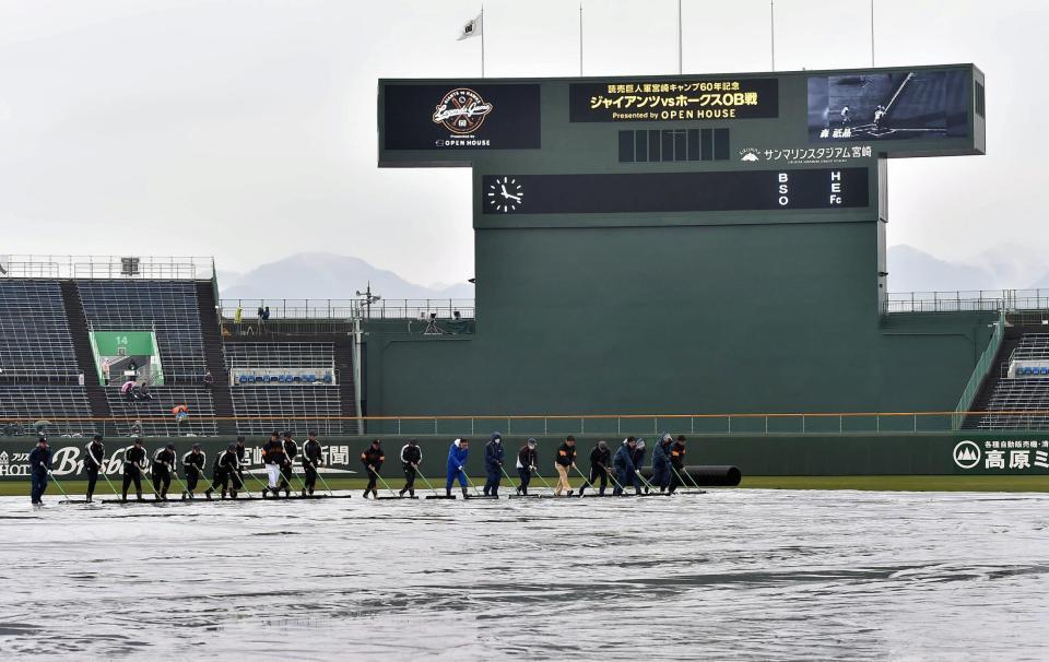 ジャイアンツ、ホークスOB戦は降雨で試合開始は1時間遅延