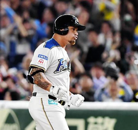 1点を追う六回2死一、三塁から酒居の直球を右前へはじき返した。三塁走者の西川が生還し一塁上で喜んだ。エンゼルスへ移籍した大谷が抜け、新主砲として期待を受けるメジャー通算44発の新助っ人。