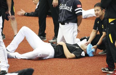 一塁ファウルゾーンで体を伸ばしていたところ、鋭い打球がワンバウンドで当たった。救急車で搬送されたが、試合開始前に球場へ戻った。29歳の柳田は15日までに今季116試合に出場し、打率リーグトップの3割5分7厘、34本塁打、95打点と活躍していた。工藤公康監督は「腫れているという話は聞いている」と話した。