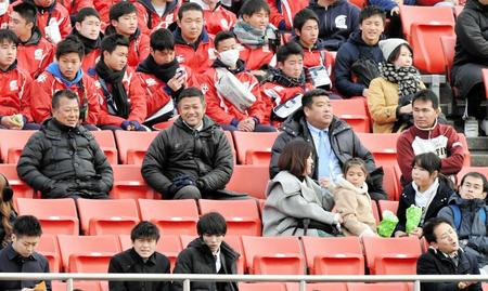 学級担任としてラグビー部員の大半を見てきた西谷監督は試合前の練習もサブグラウンド脇で見守り、綾部正史監督やフィフティーンに握り拳でゲキ。野球部のコーチ陣とともに拍手で試合に送り出した。