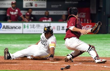デスパイネが二塁から激走!生還後に尻もち 内川の適時打でソフトバンクが同点