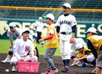 星稜・山下名誉監督、横浜・渡辺元監督らが小学生を指導 甲子園キッズフェスタ