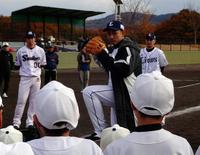 西武・栗山 神戸の子どもたちと触れ合う 6年生は野茂氏のチームと来年1月対戦