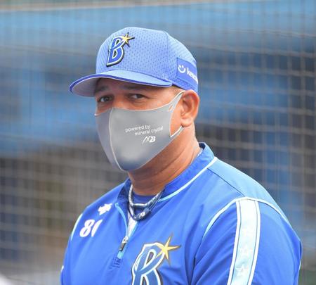 マスク姿のラミレス監督も満足げ。助っ人は新型コロナウイルス対策でハイタッチはせず、エアタッチで仲間と喜び合った。