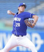 6回、笑顔を見せる梅津晃大。左は京田陽太(撮影・開出牧)