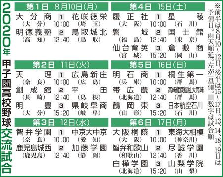 新型コロナウイルスの影響で中止になった今春のセンバツ出場校に選ばれていた32校を甲子園に招待し、各校が1試合ずつ戦う「2020年甲子園高校野球交流試合」の組み合わせ抽選会は8日、主将によるオンラインで行われた。