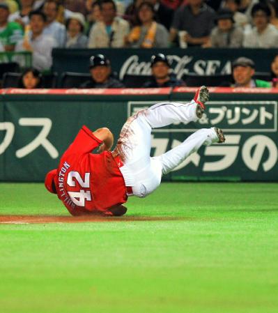 広島の先発バリントンが、今季最短の3回、同ワーストの6失点でKOされた。