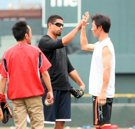 会見前にはグラウンドで、キャッチボールなどを行い、体を動かした。「素晴らしい球場。メジャーの雰囲気に似ているね」と笑顔を浮かべた。