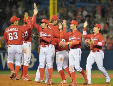 広島が逆転勝ちした。二回までに4点を先行されたが、三回にエルドレッドの適時打で1点を返して追撃。五回には広瀬の適時打などで1点差に詰め寄ると、六回には判定に猛抗議して遅延行為で野村監督が退場した後、3連打で逆転した。先発の野村は5回4失点ながら、打線の援護もあって3勝目を挙げた。