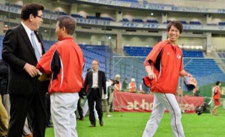 広島の前田健太投手が18日、次回登板に意欲を示した。17日・巨人戦で阿部の打球が右太もも内側に直撃し途中交代していた。一夜明けチームバスで球場入りした右腕は「普通に歩けている。腫れは少しあるけれど、これで登板がずれるのは嫌なので」と話した。