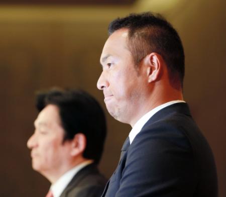 会見場には100人を超える報道陣が詰めかけた。膨大な数のフラッシュを浴びながら、黒田は緊張の面持ちで壇上の席に着いた。隣の席には広島の鈴木球団本部長が座った。