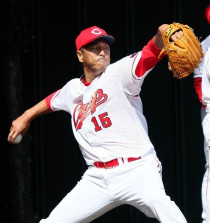 今季正捕手として期待される会沢翼捕手を相手に37球を投げた。内訳はストレート9球、ツーシーム8球、カットボール4球、カーブ5球、スライダー7球、スプリット4球。後方から緒方監督、畝投手コーチが見守る中、全球種を披露した。