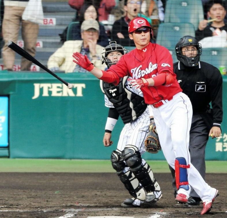 新井、甲子園で勝ち越し二塁打