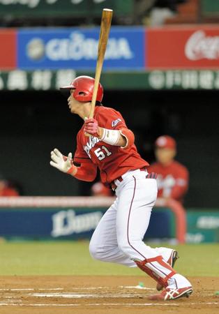 まずは新井だ。1死二、三塁から右犠飛を放ち「打ったのはスライダー。ネイト(シアーホルツ)の進塁打とか、みんながつないでくれたチャンスで先制できてよかった」と振り返った。