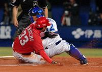 7回広島1死二塁、シアーホルツは右前にこの日4安打目となる適時打を放つ=横浜スタジアム(撮影・吉澤敬太)