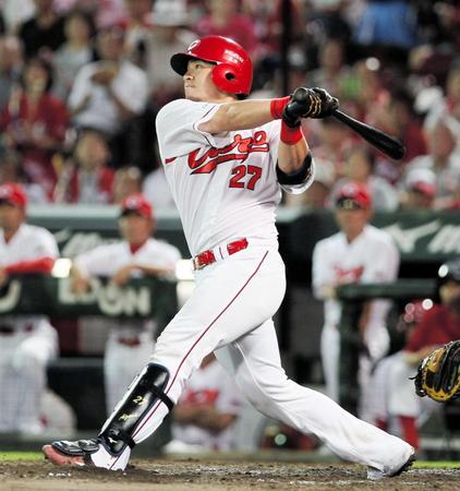 広島が2-5の四回、2つの犠飛で1点差に追い上げた。