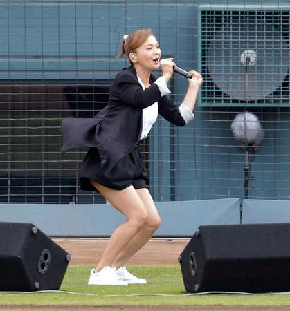 歌手の華原朋美(40)が国歌独唱し、始球式を行った。始球式では捕手までワンバウンドで届かせ、ジャンプして喜びを表現した。