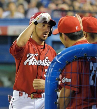 広島が4点ビハインドの四回、菊池の7号ソロで1点を奪った。
