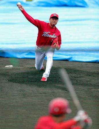 マウンド前に防球ネットを設けず、実戦に近い形での投球。小窪哲也内野手(30)、安部友裕内野手(26)、ドラフト5位・西川龍馬内野手(21)=王子=を相手に、変化球を交えながら全40球。安打性の打球はゼロだった。