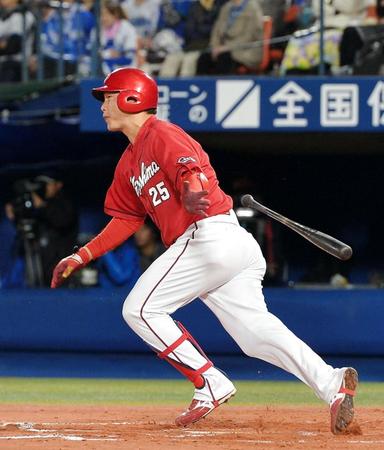 広島の新井貴浩内野手(39)が3点差の六回、2死から中前打を放った。1-1から3球目、内角の138キロシュートに逆らわず、打球は飛び付く遊撃・倉本の右を抜けた。