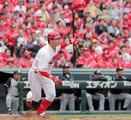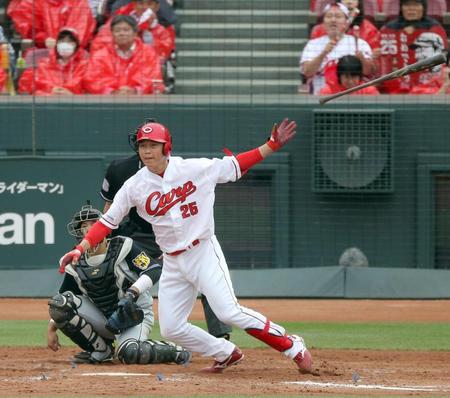 広島の新井貴浩内野手(39)が1点リードの四回、先頭で右前打を放った。3ボール1ストライクから5球目、外角の141キロ直球に逆らわず、鋭い打球を右方向に運んだ。