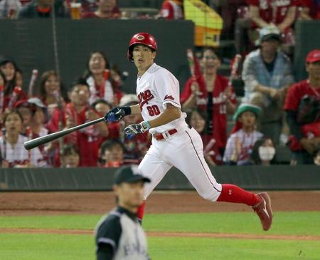 広島が1点ビハインドの四回、鈴木誠也外野手(21)の三塁打から同点に追い付いた。