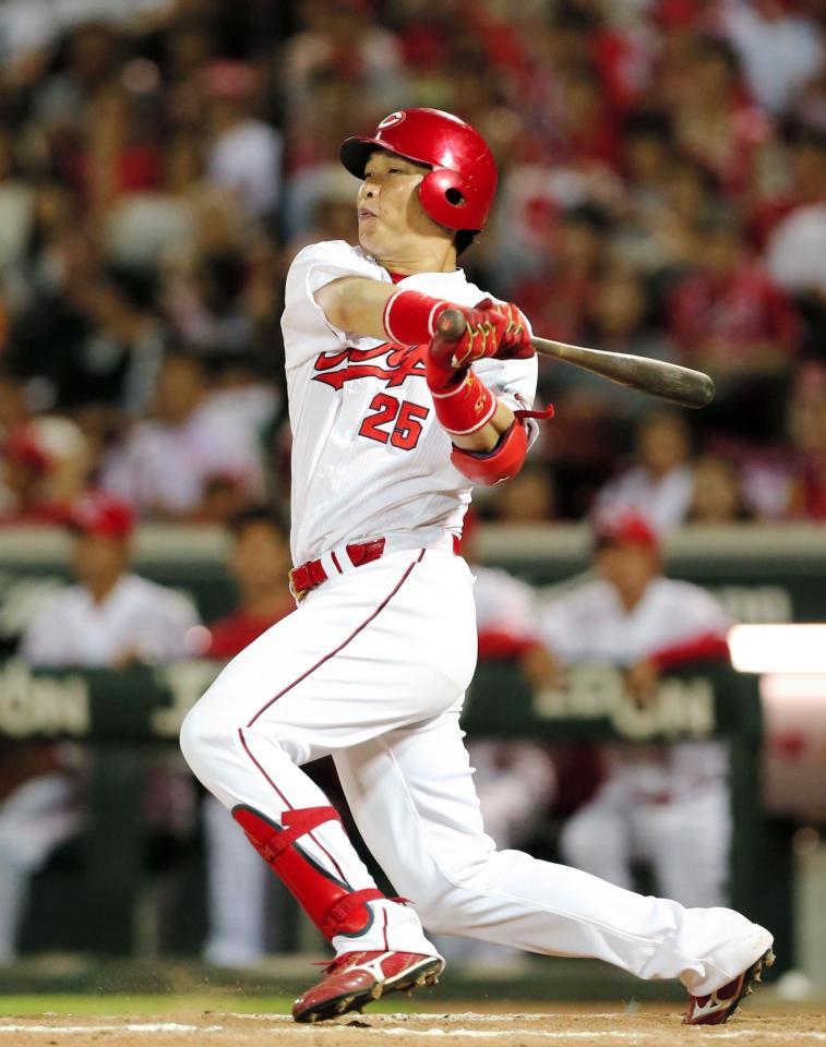 広島 七回に鈴木が16号3ラン、新井が適時打でお膳立て