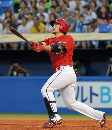 2点リードの四回。先頭の松山が立て直しを図るヤクルト先発・山中に強烈な一撃を見舞う。カウント0-1からの甘いスライダーを完璧に捉え、右翼席へ運ぶ9号ソロ。「前でさばくというのが(山中の)攻略法。それで結果が出てよかった」としてやったりだ。