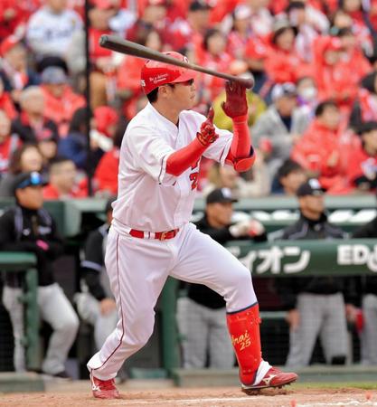 4番・新井、三回に2点適時二塁打 昨季からお得意さまの能見から