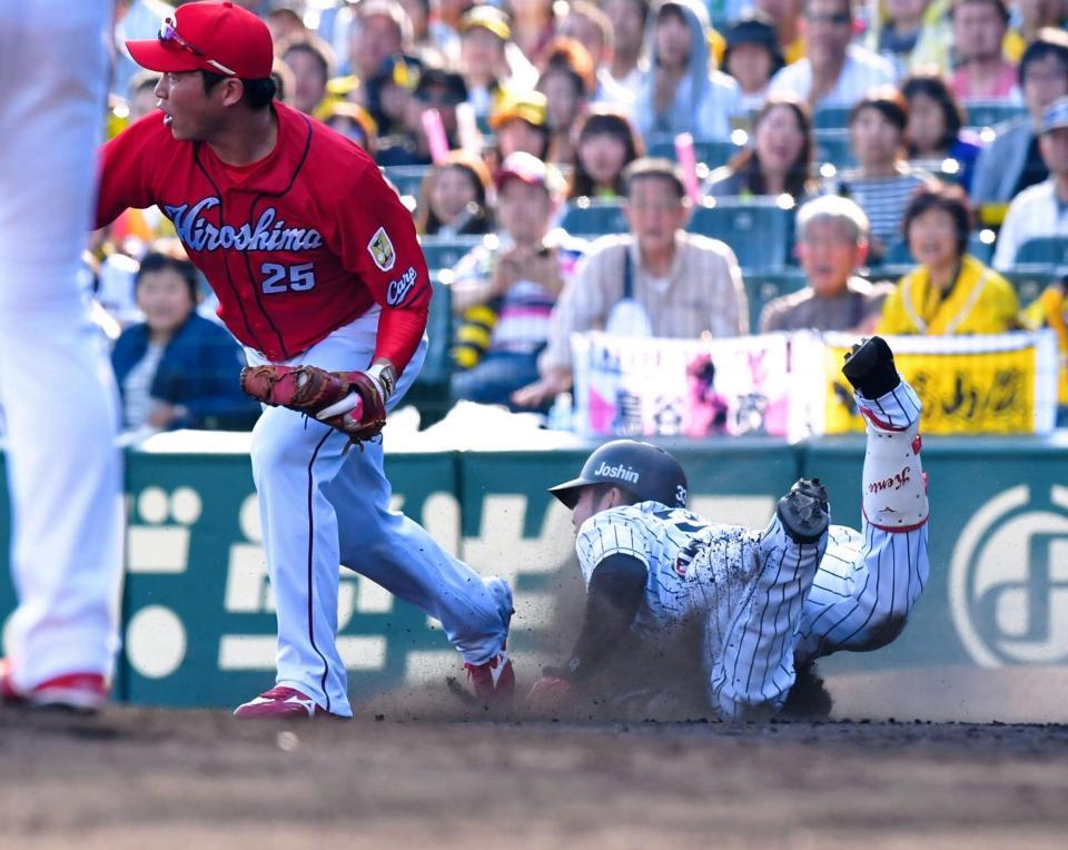 菊池が八回にファインプレー 阪神・金本監督の抗議も受け入れられず