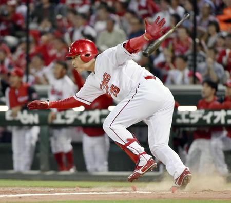 0-1の五回。2死三塁から鈴木が中前適時打を放ち、同点。続くエルドレッド、新井の連打で勝ち越すと、さらに安部、石原もヒットで続き、5連打で一挙5点を奪った。