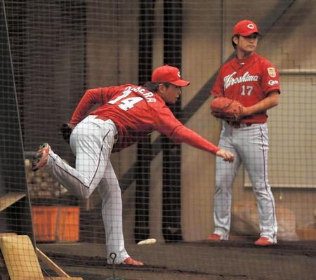 日本ハム戦へ薮田、大瀬良、岡田の先発3人が札幌で練習
