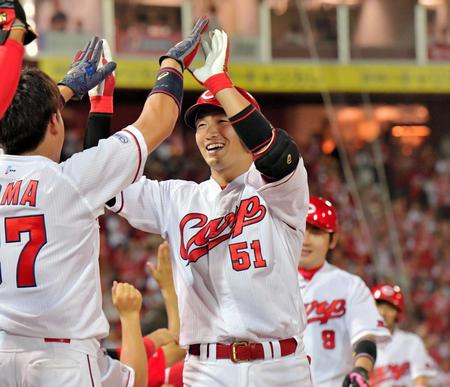 0-0の四回、2死一、二塁から新井の中前適時打で先制。六回には無死一、二塁から鈴木が左翼席へ21号3ランを放ち、加点。さらに、無死満塁から会沢が2点適時二塁打。2死後も菊池の2点適時打など、この回、一挙8点を挙げた。