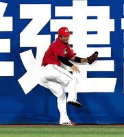 鈴木がタンカで退場 外野フェンスに激突し足首痛める 松葉杖姿で病院へ