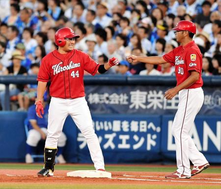 初回2死一、二塁で打席を迎えた。1ボールからの2球目、左腕・今永が投じた内角寄りの144キロ直球に反応。「いい所に落ちてくれました」と詰まった打球は中前へポトリと落ちた。その間に二走・田中が本塁へ生還。先制点を奪った。