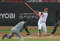 松山のフェンス際打球、リプレー検証で三塁打 続く新井三振で無得点