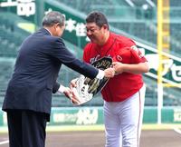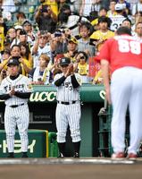 ウエスタン・リーグを制覇した広島ナインは記念写真に納まる=甲子園(撮影・北村雅宏)