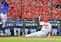 5回広島無死一塁、左前打を放つ新井貴浩=マツダスタジアム(撮影・吉澤敬太)