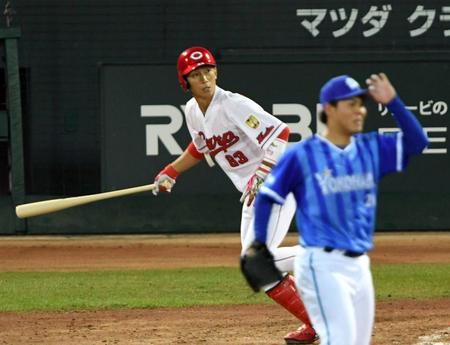 この回先頭の丸が二塁へのボテボテのゴロを放つと快足を飛ばして内野安打に。1死後にバティスタが左前打でチャンスメーク。新井が見逃し三振に倒れて2死一、二塁とするも、西川がDeNA先発・浜口の直球を左前へはじき返す適時打を放った。